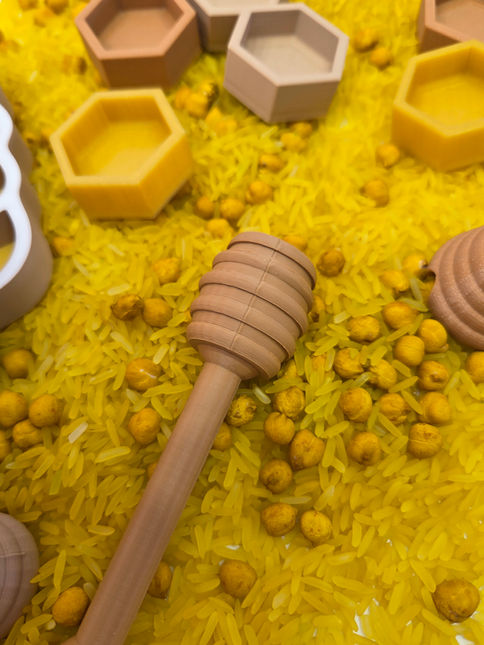 Deze 3D-geprinte honinglepel is speciaal ontworpen voor creatief spel met kinetisch zand of plasticine. Door de lepel te rollen, ontstaat een mooi lijnenpatroon dat perfect past binnen thema’s zoals bijen, natuur en lente.