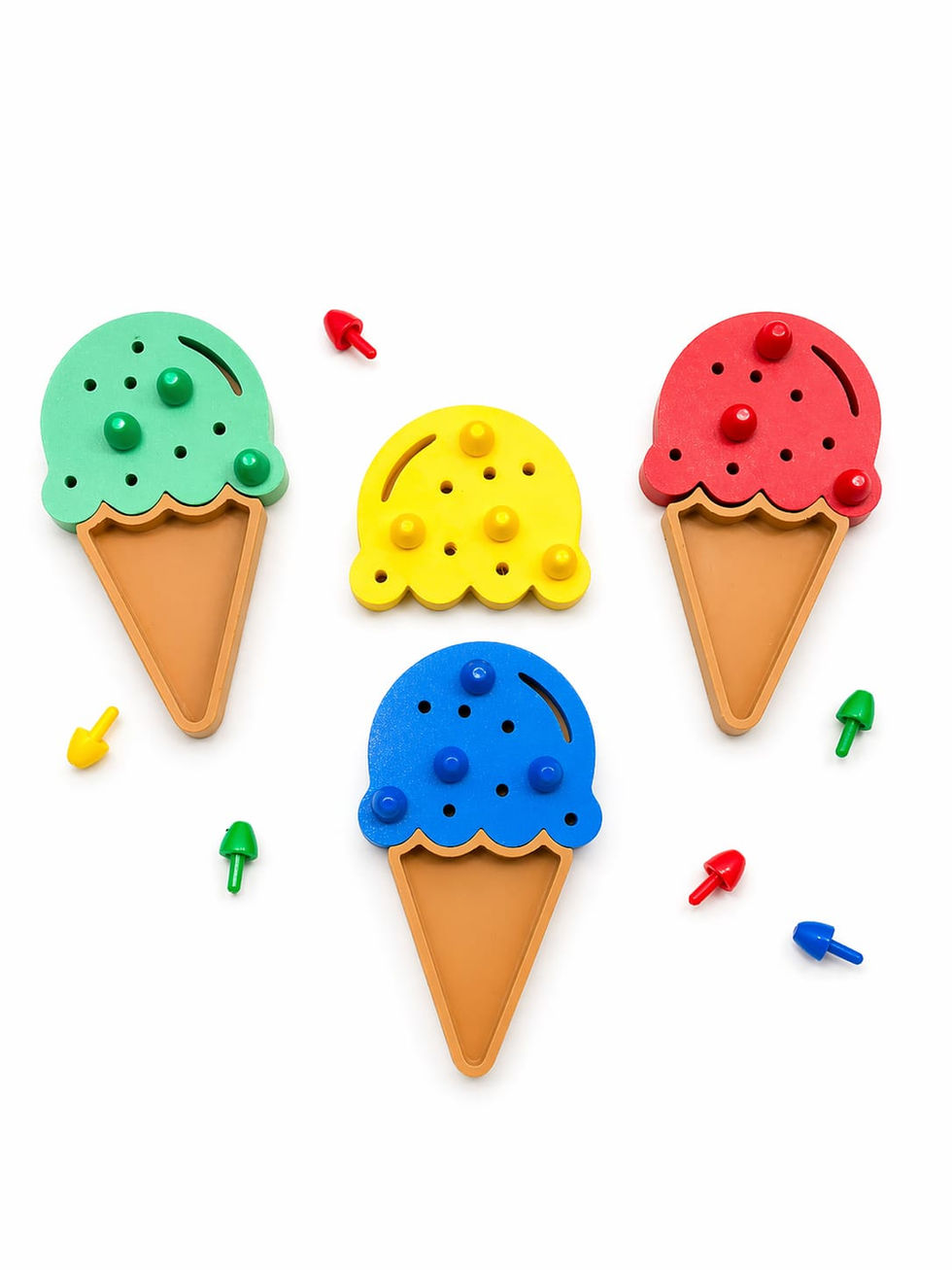•fijne motoriek: steek de parels in de juiste gekleurde ijsbolletjes (sorteren naar kleur)